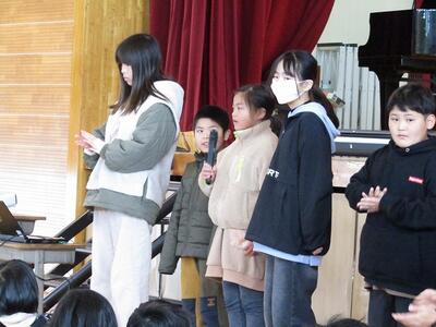 次に、校長からの話がありました。2学期の始業式で子ども達に頑張って欲しい伝えた「自分の命は自分で守ること」「友達に嬉しいことをすること」「知っている方々に進んであいさつをすること」の3つについて振り返ってもらいました。子ども達は、2学期の自分自身の生活を思い出しながら、振り返っていました。更に、校長から子ども達の成長についての話がありました。「朝のボランティア活動の充実」と「あいさつ」についてです。自分たちで課題を見つけ、解決するために実行に移すことができた素晴らしさを褒めてました。また、今後の課題「友達への接し方」「授業中の取組」等についても話しました。