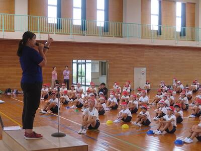 この会の中で、校長は「この瞬間から運動会は始まった。運動会は、とても大きな行事であり、お家の方や地域の方も、ともて楽しみにしている。みんなが持てる力を十分に発揮して、運動会をしてよかったと思える運動会にしてほしい。」と述べました。