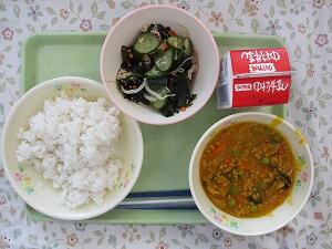 ごはん 牛乳 かぼちゃのそぼろ煮 酢の物 593Kcal