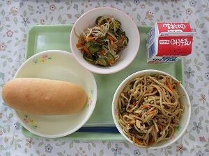 減量コッペパン 牛乳 ジャージャー麵 きゅうりともやしの和え物 584Kcal