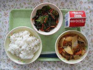 ごはん 牛乳 ほうとう汁 ほうれんそうのおかか和え 567Kcal