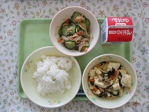 ごはん 牛乳 豆腐の中華煮 胡麻酢和え 598Kcal
