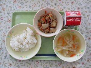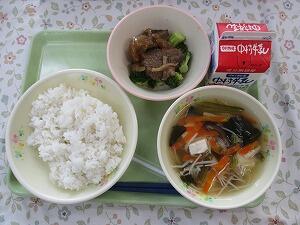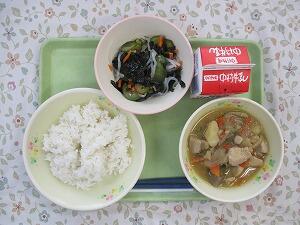 ごはん 牛乳 ほうとう汁 ひじきの炒り煮 596Kcal