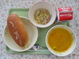 ミルクパン 牛乳 ほうれん草のスープ かぼちゃのミートソース煮 576Kcal