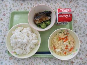 ごはん 牛乳 かきたま汁 いわしみぞれ煮 きゅうりの胡麻和え 553Kcal