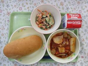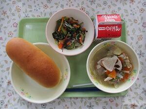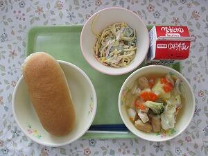 コッペパン 牛乳 ポトフ スパゲッティサラダ 540Kcal