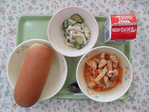 ミルクパン 牛乳 ミートボールのトマト煮 きゅうりとツナのサラダ 598Kcal