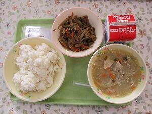 ごはん 牛乳 豚もやしスープ ごぼうの金平 571Kcal