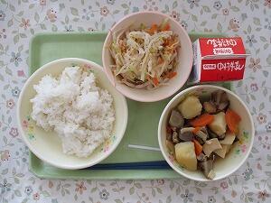 ごはん 牛乳 筑前煮 キャベツの胡麻和え 575Kcal