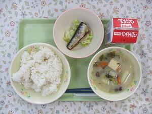 ごはん 牛乳 厚揚げの味噌汁 いわし生姜煮 茹でキャベツ 570Kcal