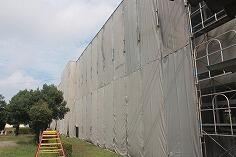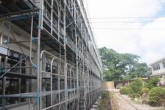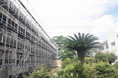 7月20日から夏休みに入りました。第1週は、個人面談等が行われています。そんな中で、2棟校舎の防水工事が始まりました。校舎がこれまでとは違った状態になって、これからひと月以上をかけて工事が行われます。