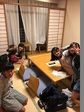 修学旅行の夜は、夕食をいただくだけではありません。合わせて、テーブルマナーの講習もしていただきました。やはり、修学旅行は、ただの旅行とは違います。ちょっと緊張しながら、それでもおいしくいただくことができました。そして、各部屋では、みんなでわいわいやりながら過ごしました。