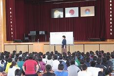 10月2日、火曜日の全校朝会では、読書についてのお話がありました。読書の秋、本をたくさん読むようにということで、読書ビンゴや読書の木の説明がありました。南小の図書室は、新しい読み物がたくさん入ったことばかりでなく、1学期に貸出システムのパソコンの入れ替えが行われたこともあり、大変充実しています。今月は、親子読書も行われます。これからも読書好きの子どもたちを増やしていきたいです。