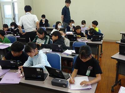 都農町のごみを減らすために、子どもたちが考えて行動していく授業です。1年間を通して取り組んでいきます。第1回は、現在の都農町のごみ問題について調べました。