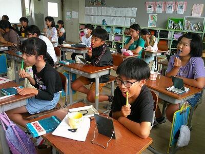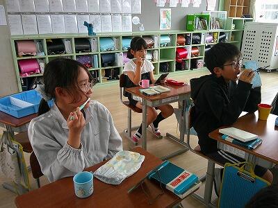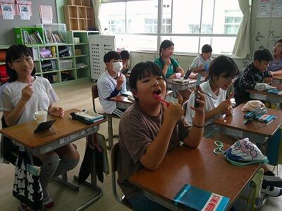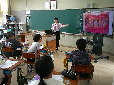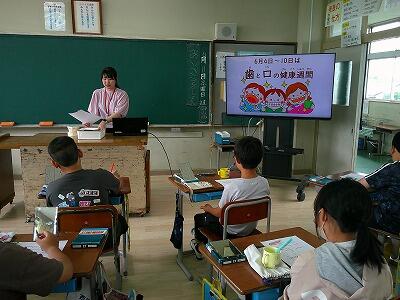 6月は、保健室の先生から歯と口の健康について、歯科衛生士の方々から正しい歯磨きの仕方について歯科指導をしていただきました。