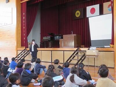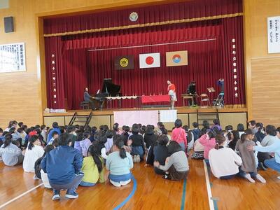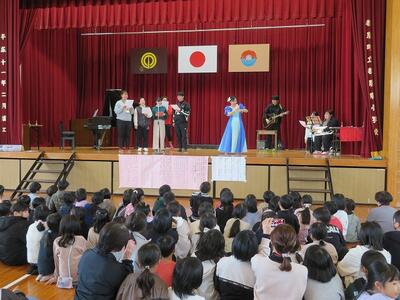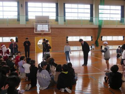 12月17日(火)の昼休み時間に、本校体育館においてクリスマスコンサートが行われました。有志の職員によるコンサートでした。事前にポスター等でお知らせがしてあることもあり、体育館にはたくさんの子どもたちが集まりました。