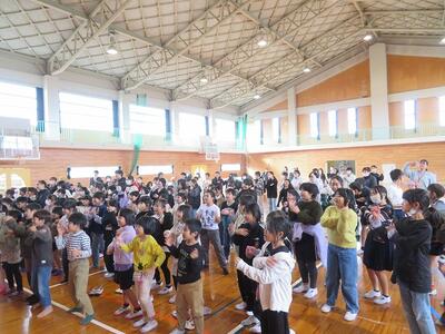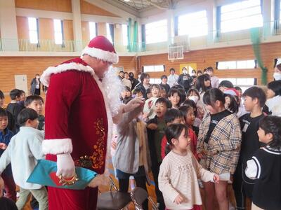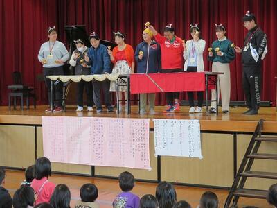 最後に、お礼に全校児童によるクリスマスの歌と踊りをプレゼントして、対面式は終了しました。