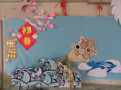 令和7年1月6日(月)から3学期がスタートしました。本校の玄関には、新年を祝う飾りが展示してあります。本校のスクール・サポート・スタッフによる手作りです。お立ち寄りの際は、是非ご覧ください。