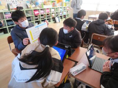 今回6年生が行った学習内容は、これまで学んだことを基に、自分たちが実現できそうなアイデアを考え、それを2月17日(月)に行われる「子ども議会」で議員の立場で町に提言するための準備でした。パワーポイントでの説明資料やイメージ図等の作成を行いました。今後、更に準備を進め、代表児童がリハーサルを経て、議会に臨みます。