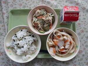 ゆかりごはん 牛乳 けんちんうどん 小松菜のおかか和え 570Kcal