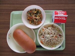 ミルクパン 牛乳 チンゲン菜のスープ 冷やし中華 558Kcal