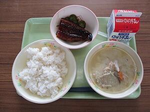 ごはん 牛乳 具だくさん呉汁 鰻の蒲焼 きゅうりの昆布和え 607Kcal