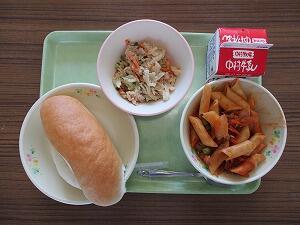米粉パン 牛乳 ペンネのトマトソース煮込み 大根のアーモンドサラダ 619Kcal