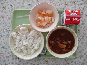 ごはん 牛乳 秋の味カレー フルーツクリーム和え 684Kcal