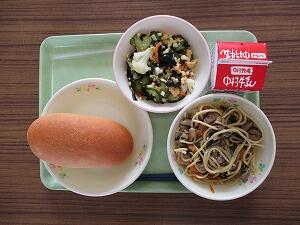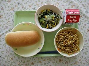減量ミルクパン 牛乳 和風スパゲティ ミモザサラダ 635Kcal
