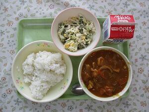 ごはん 牛乳 ポークカレー みかんのサラダ 634Kcal