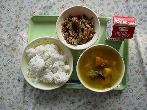 ごはん 牛乳 ほうとう汁 ひじきの炒め煮 574Kcal