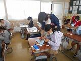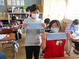 3週間ほどはやい梅雨入り。毎日のお天気が気になる季節になりました。5年生から、家庭科の学習が始まります。料理を作ったり、ミシンを使ってエプロンを作ったり、子どもたちは「家庭科」の学習をとても楽しみにしています。 今日は、「なみ縫い」の練習。針を一刺ししては、「先生!これでいいですか?」と、ドキドキの様子。