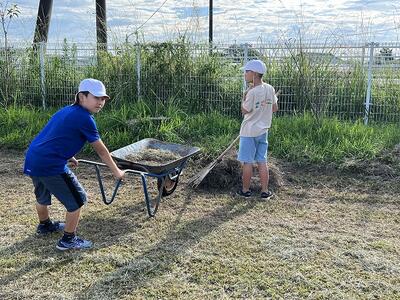 都農南小学校は、今、「やる気と活気」にあふれています。写真は、9月8日(金)の朝の様子です。用務員が機械で刈った運動場の草を、5・6年生が自ら集めている様子です。5・6年の担任も加わり、取り組んでくれました。自主的に行ってくれている5・6年の様子を見ていると、表情や体の動かし方等にやる気を感じます。また、取り組んでいる子どもたち全体の様子を見ていると、活気を感じます。「自分たちの学校を自分たちの手できれいにしていこう!」という気持ちがひしひしと伝わってきます。5・6年生がリーダーとなり1年生から4年生までを巻き込みながら、南小学校をこれまで以上に素敵な学校にしてくれることを期待しています。