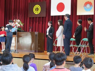 3月29日(金)に離任式を行いました。本校からは、6名の職員が離任し、新任地に向かうことになりました。離任式では、職員一人一人が子ども達に思いを告げました。子ども達は、職員の話にしっかりと耳を傾け、これまでの思い出を心の中に描いているようでした。代表児童が挨拶を行った後、花束が贈呈されました。職員の中には感極まり、涙ぐむ場面もありました。離任する6名の職員は、子ども達や留任する職員からのたくさんの拍手に包まれながら体育館を後にしました。