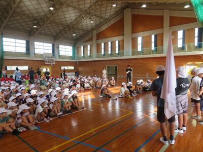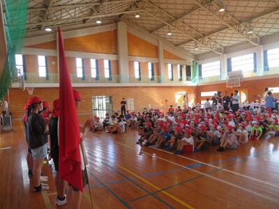この会の中で、校長は「この瞬間から運動会は始まった。運動会は、とても大きな行事であり、お家の方や地域の方も、ともて楽しみにしている。みんなが持てる力を十分に発揮して、運動会をしてよかったと思える運動会にしてほしい。」と述べました。