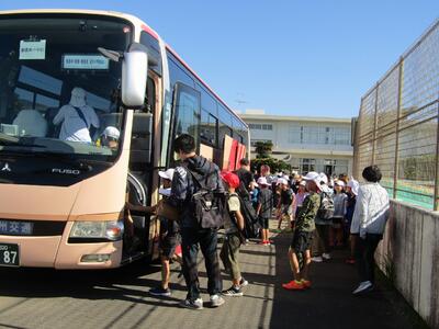 3校合同宿泊学習に向けて出発
