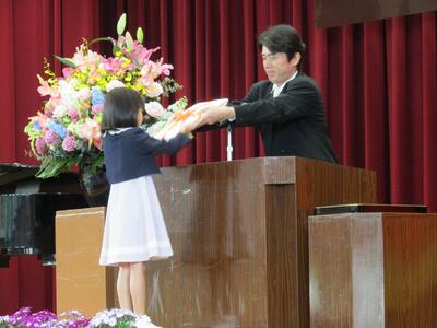 4月12日(水)に入学式が行われました。今年度は、36名の新1年生が入学しました。式場へ入場した子どもたちは、うれしそうだったり、恥ずかしそうだったりと様々でした。入学式の中では、教科書授与や誓いの言葉を新1年生とは思えないほど堂々と行い、会場がたくさんの拍手に包まれました。その後、校長の話や、来賓の方々の祝辞をはじめ、6年生から学校生活について発表が行われるなど、温かい雰囲気で新1年生を迎えました。これから、楽しい学校生活を送ってくれることでしょう。入学、おめでとう!