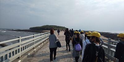 2日目は、まず、青島神社を訪れました。昨日の鵜戸神宮に続いての神社めぐりです。ここでも海幸山幸にまつわる由来を聞き、宮崎の誇る観光名所をあらためて見直すことができたようでした。