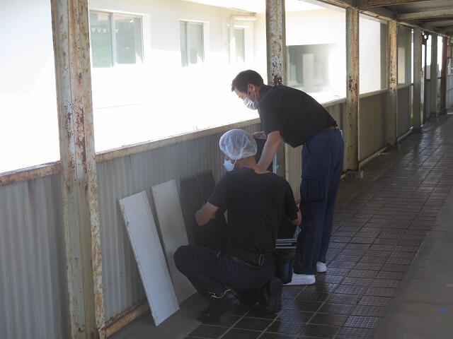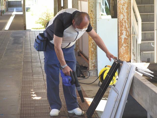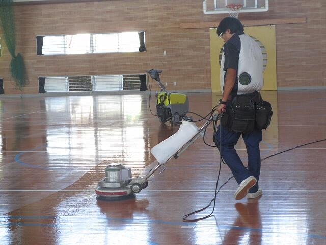 8月3日水曜日、この日は、「サニクリーン日向」の方々により、各教室のエアコンのフィルター掃除や体育館床の清掃作業・ワックスがけが行われました。