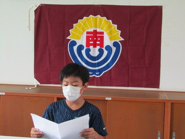 2時間目には始業式がオンラインで行われました。今回は、4年生の宮地さんと河野さんが2学期の目標について作文を発表してくれました。「たくさん本を借りて読みたい」「47都道府県を全て覚えたい」などの思いを力強く発表してくれました。