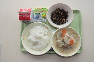 ごはん 牛乳 豚汁 ひじきの炒め煮 納豆 638Kcal