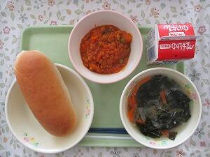 ミルクパン 牛乳 ほうれん草のスープ かぼちゃのミートソース煮 576Kcal