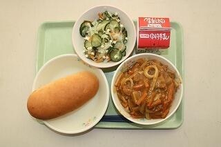 減量コッペパン 牛乳 カレーうどん チーズサラダ 566Kcal