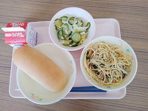 コッペパン 牛乳 和風スパゲティ みかんのサラダ 614Kcal