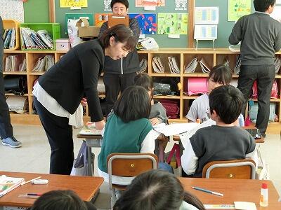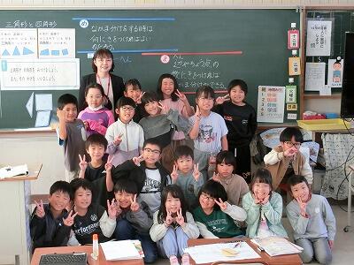2年生で初期研修の研究授業が行われました。算数科の三角形と四角形の学習でした。学習のめあては「なかま分けをする時は、何に気をつければよいのだろう。」でした。