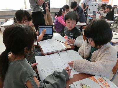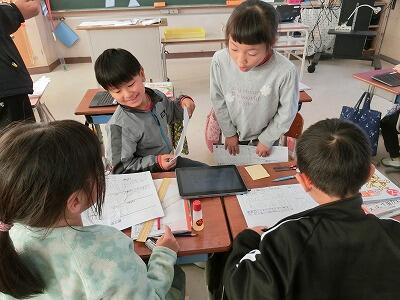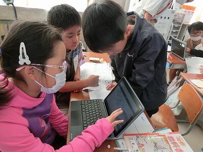 児童用タブレットを活用しながら、直線の数や囲まれているかどうかに気を付ければ、仲間分けすることができることを学習していました。