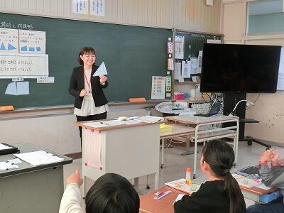 算数科の平均とその利用の学習でした。学習のめあては「いくつかの量の平均から、全体の量はどのように見積もるのだろう。」でした。授業の様々な場面で、タブレット(スマイルノートやSlido等)が積極的に活用されていました。