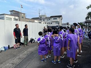 そのことを指導者の方に相談したところ、自治会長様のお力添えをいただき、本番前日の最後の練習を寺迫地区の皆様に見ていただくことができました。