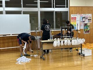 この後、解散となり、先生方は衣装等を学校へ持ち帰り、汗抜きのために衣装を干したり、たすきやハチマキを洗濯したりしてくださいました。