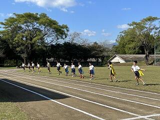 全校の縦割でチームが決まっているので、みんなで協力して声をかけあって楽しそうです。